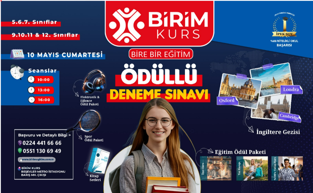 12. Sınıf ve Mezun grubu öğrencileri AYT denemesinden en yüksek puan alan ve 2024-2025 dönemi kursa kayıt/kayıtlı olması durumunda İngiltere Eğitim Gezisi ödülünü almaya hak kazanacaktır.